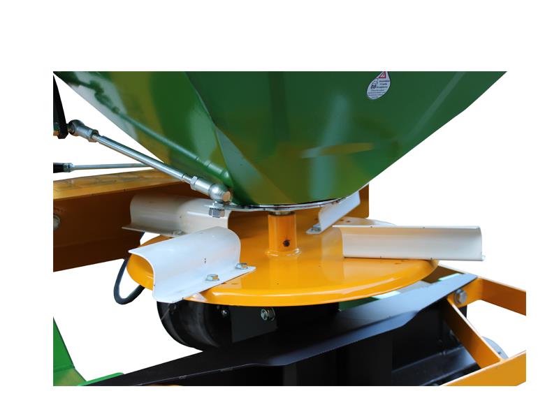 Tek diskli Gübre Serpme Makinesı 600, 800 , 1000 lt. depo hacmine sahiptir. Traktöre üç nokta askı sistemiyle bağlanan, hareketini traktör kuyruk milinden alır. İthal şanzumana sahip Gübre Serpme Makinesi kuyruk milinden aldığı hareketi disk’e iletir ve disk üzerinde oluşan santrifüj kuvvet ile gübre serpme işlemini gerçekleştirir.