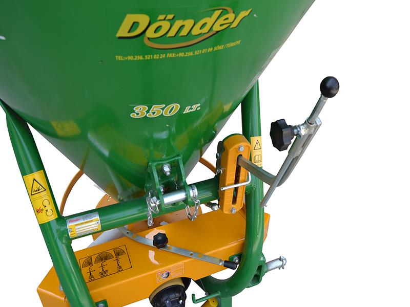 TGS 350 Gübre Serpme Makinesı 350 lt. depo hacmine sahiptir. Traktöre üç nokta askı sistemiyle bağlanan TGS 350 hareketini traktör kuyruk milinden alır.